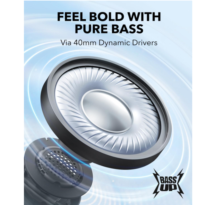 Specially designed to provide top-quality, detailed sound with pure bass. soundcore H30i on-ear wireless headphones use BassUp technology to offer a listening experience you can feel.